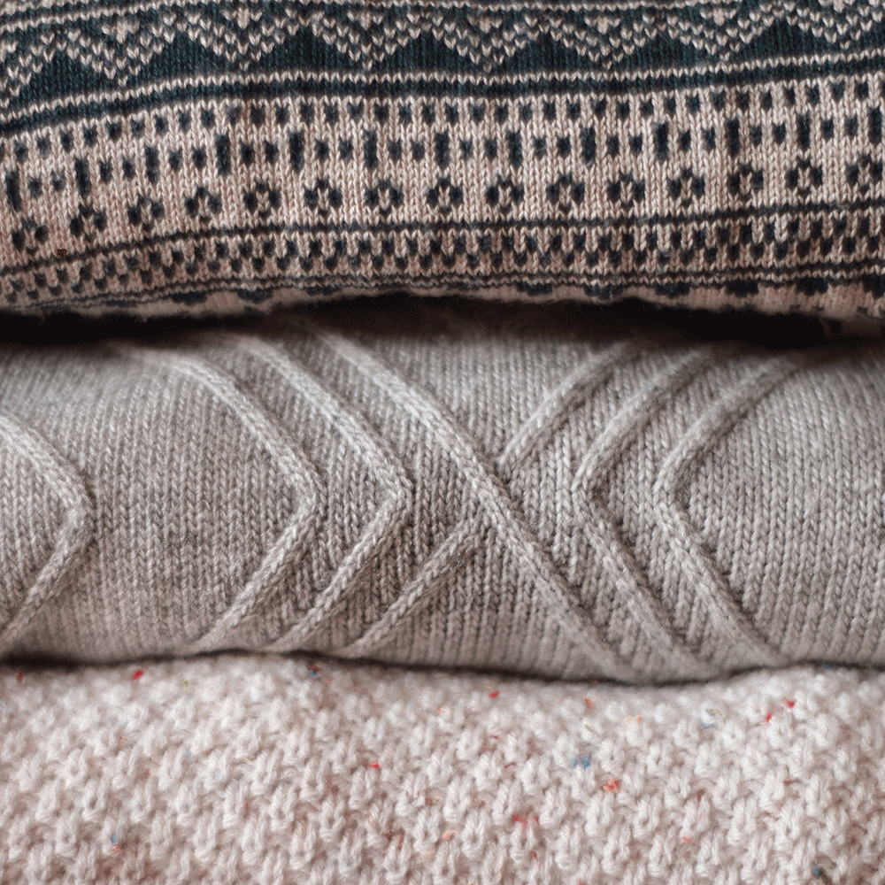 Davon könnten wir wohl zehnmal mehr verkaufen als wir finden! Insbesondere die Gattung der gemusterten Herrenpullover gehört seit Jahren zu unseren Bestsellern. Wir nähen Pullis für Frauen daraus, in zwei unterschiedlichen Längen, dazu Versionen in Kombination mit anderen Materialien. Aber eben, diese Muster, oh la la! Manchmal wild, manchmal schlicht und manchmal schlicht hässlich, so dass man nicht weiss, ob man lachen oder weinen soll.