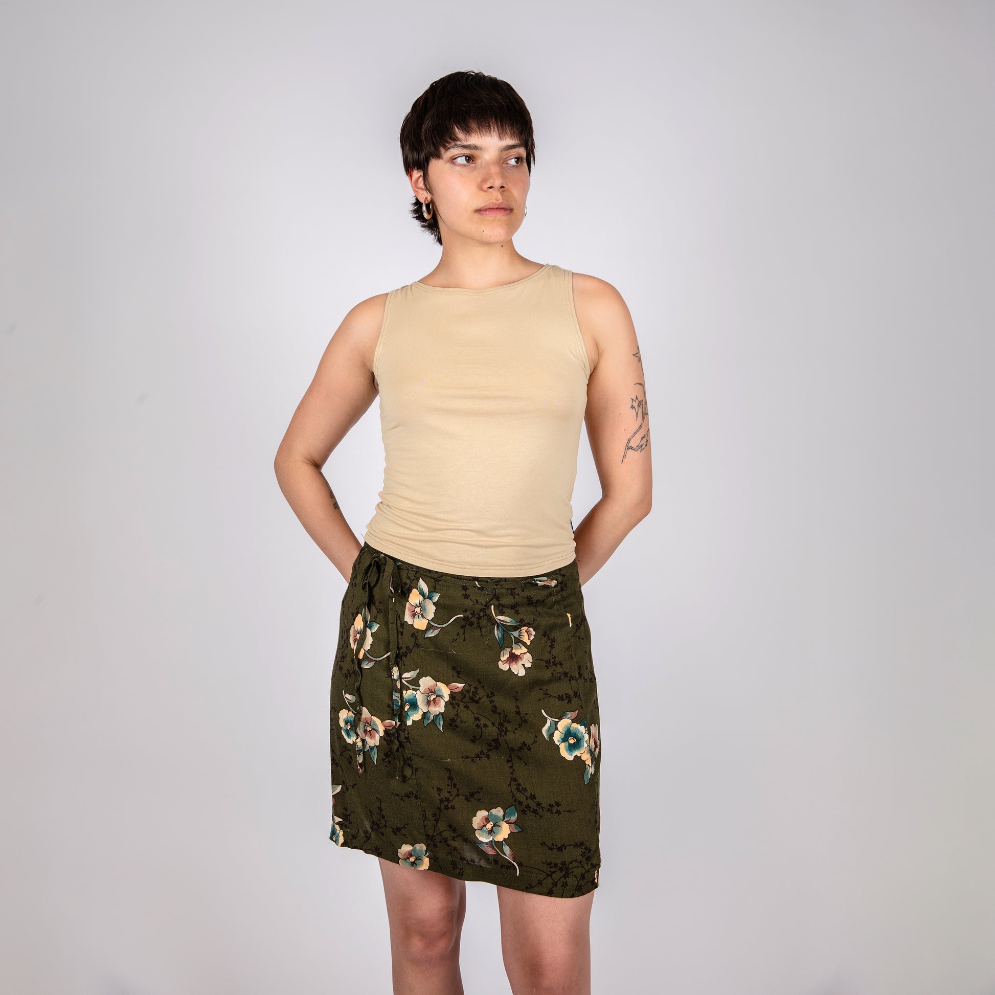 Dieser Wickelrock mit floralen Mustern ist aus upcycled Rayon gefertigt, der sich leicht und angenehm auf Ihrer Haut anfühlt. Der Wrap Mini Skirt ist der perfekte Begleiter für den Alltag, lässt sich aber ebenso stilvoll für festliche Anlässe stylen. Ein nachhaltiges Lieblingsstück, das Komfort und Eleganz mühelos vereint.